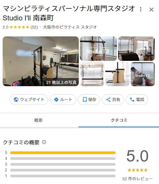 大変ありがたいことにGoogle口コミでは2026年3月14日時点で52件の口コミを頂き、全て5の評価を頂いております。
